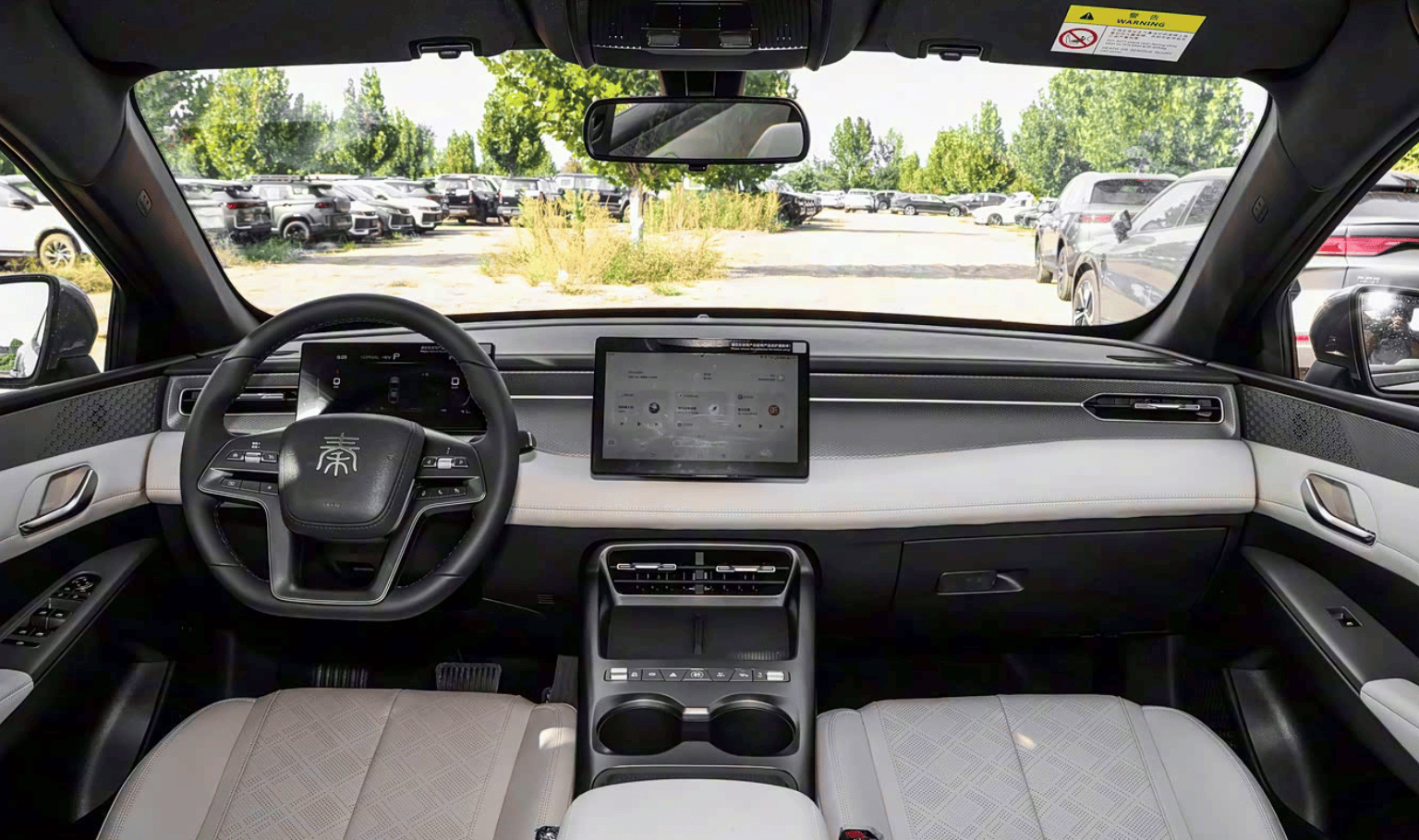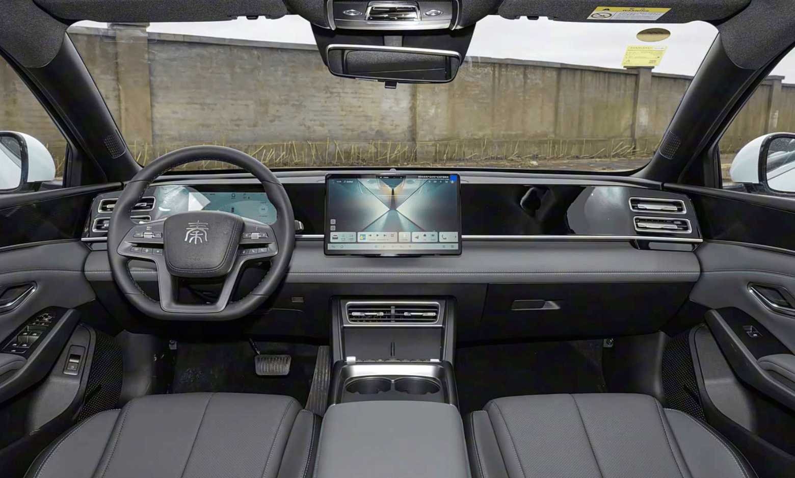 首先是剛剛改款的秦L DM-i,全系都沒有天窗、四門車窗一鍵升降和后視鏡電動折疊,中控屏也僅僅采用了12.8英寸的中等尺寸。