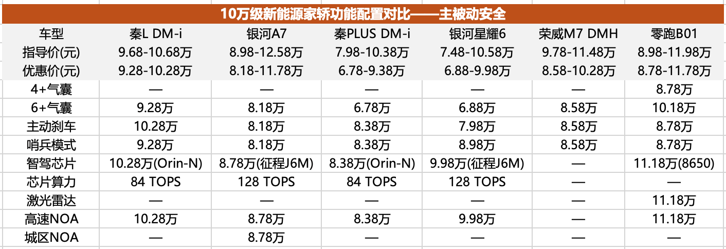相反的是,定位更低的銀河星耀6,只有9.98萬的頂配才配備高速NOA,比秦PLUS DM-i的8.38萬貴了很多。