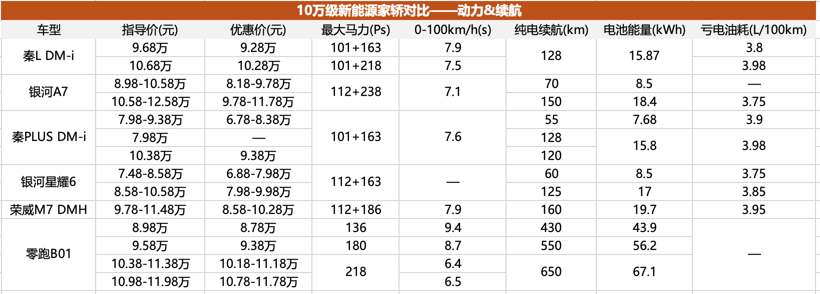 另外,零跑B01近期強勢崛起,銷量超越了一系列插混車型,其影響不僅僅局限在純電轎車,而是對插混家轎市場也產(chǎn)生了不可忽視的沖擊,我們也將這款車納入對比。