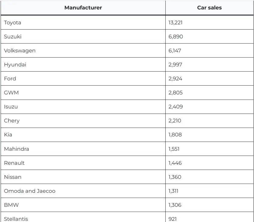 這一組合拳使得奇瑞系產(chǎn)品價(jià)格覆蓋了從十余萬蘭特到八十萬蘭特的廣闊區(qū)間,形成了強(qiáng)大的市場(chǎng)合力。到2025年10月,僅奇瑞、Omoda、Jaecoo、Jetour四個(gè)品牌的合計(jì)銷量就達(dá)到4,377輛,在全市場(chǎng)排名中躍升至第四位,僅次于豐田、鈴木和大眾,將現(xiàn)代、福特等老牌強(qiáng)者甩在身后。