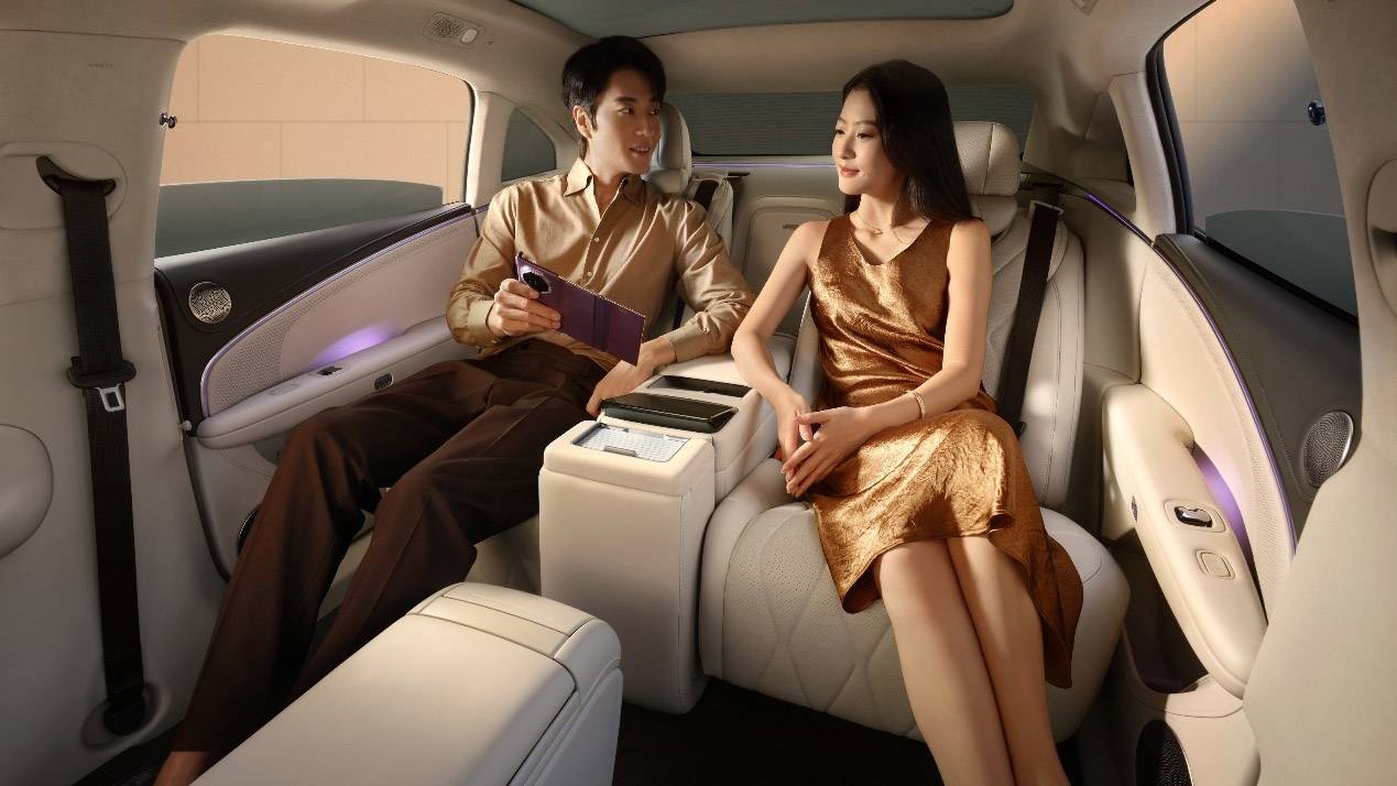 座艙方面,新車采用14.6英寸中控大屏,內(nèi)置華為鴻蒙座艙HarmonySpace 5,支持多設(shè)備協(xié)同和智能語(yǔ)音交互,能精準(zhǔn)識(shí)別后排乘客的指令。
