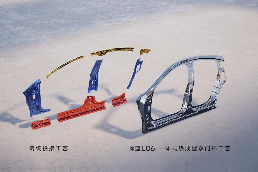 事實上,深藍L06的一體化鑄鋁高強度車體給車輛的安全及操控均帶來了增益。深藍L06的產線采用了與特斯拉同源的7700T壓鑄機,CTV 電池車身一體化集成技術,一體式熱成型雙門環工藝(特斯拉 Cybertruck 同款工藝);車身底部采用了PVC防石擊涂層充分實現防剮蹭用途;此外,電池86%的集成效率,在提升頭部空間的同時,也降低了電池包的重量和整車的重心。