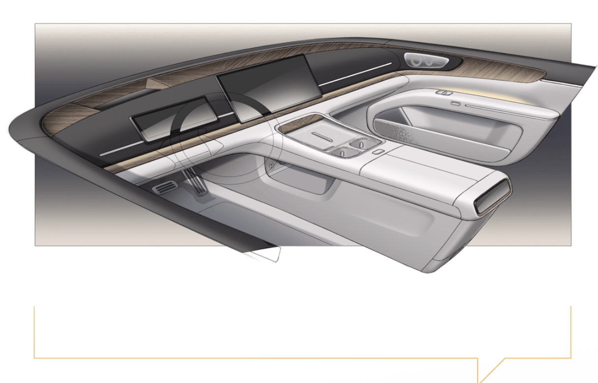 從已經(jīng)公布的信息來看,新車前排采用了環(huán)抱式布局,搭配雙懸浮式液晶屏與HUD抬頭顯示的組合,風格簡潔。車內(nèi)通過皮質(zhì)、木紋飾板與金屬材質(zhì)的搭配,提升了座艙的豪華與溫馨氛圍。值得一提的是,新車配備了4處柔光漫射的靜奢壁燈和可360度旋轉(zhuǎn)的航空閱讀燈,細節(jié)上營造出獨特的居家感。
