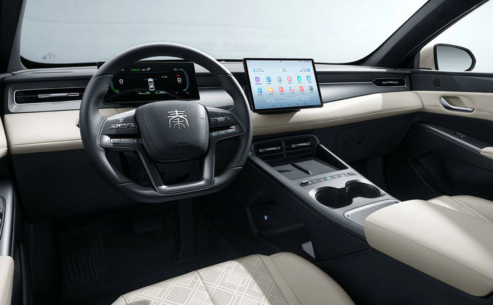 軸距達(dá)到2718mm的秦PLUS,座椅布局為五座,車(chē)內(nèi)采用大面積軟質(zhì)材料加以包裹,也沒(méi)有花里胡哨的線條擾亂視線,平底式多功能方向盤(pán),扁平的空調(diào)出風(fēng)口,厚實(shí)的座椅,大量的儲(chǔ)物空間以及中控屏等,既透著質(zhì)感和審美感,也顯示出一定的科技感。