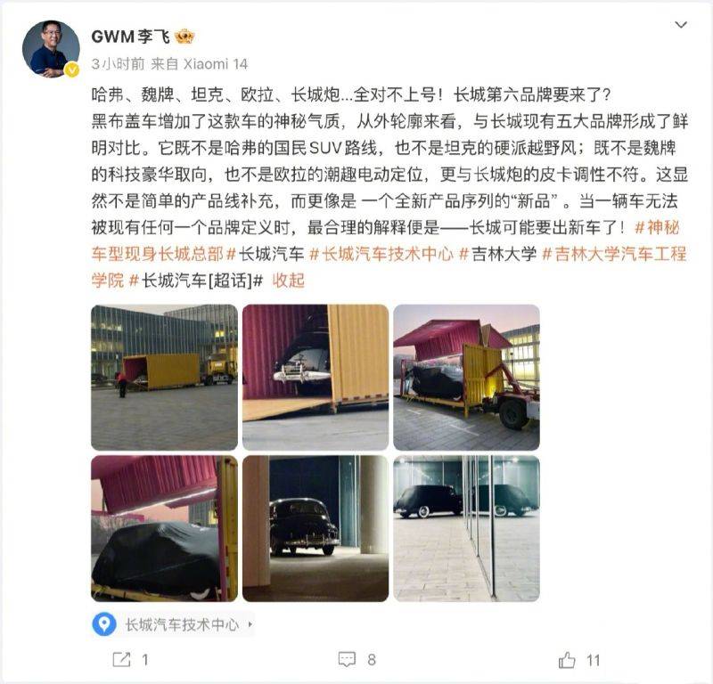 一則短暫曝光的微博讓長城汽車的全新品牌布局浮出水面。12月19日,長城線控底盤總工程師李飛的一條預熱博文引發行業熱議,配文里“哈弗、魏牌、坦克、歐拉、長城炮全對不上號”的表述,直指即將登場的第六品牌。
