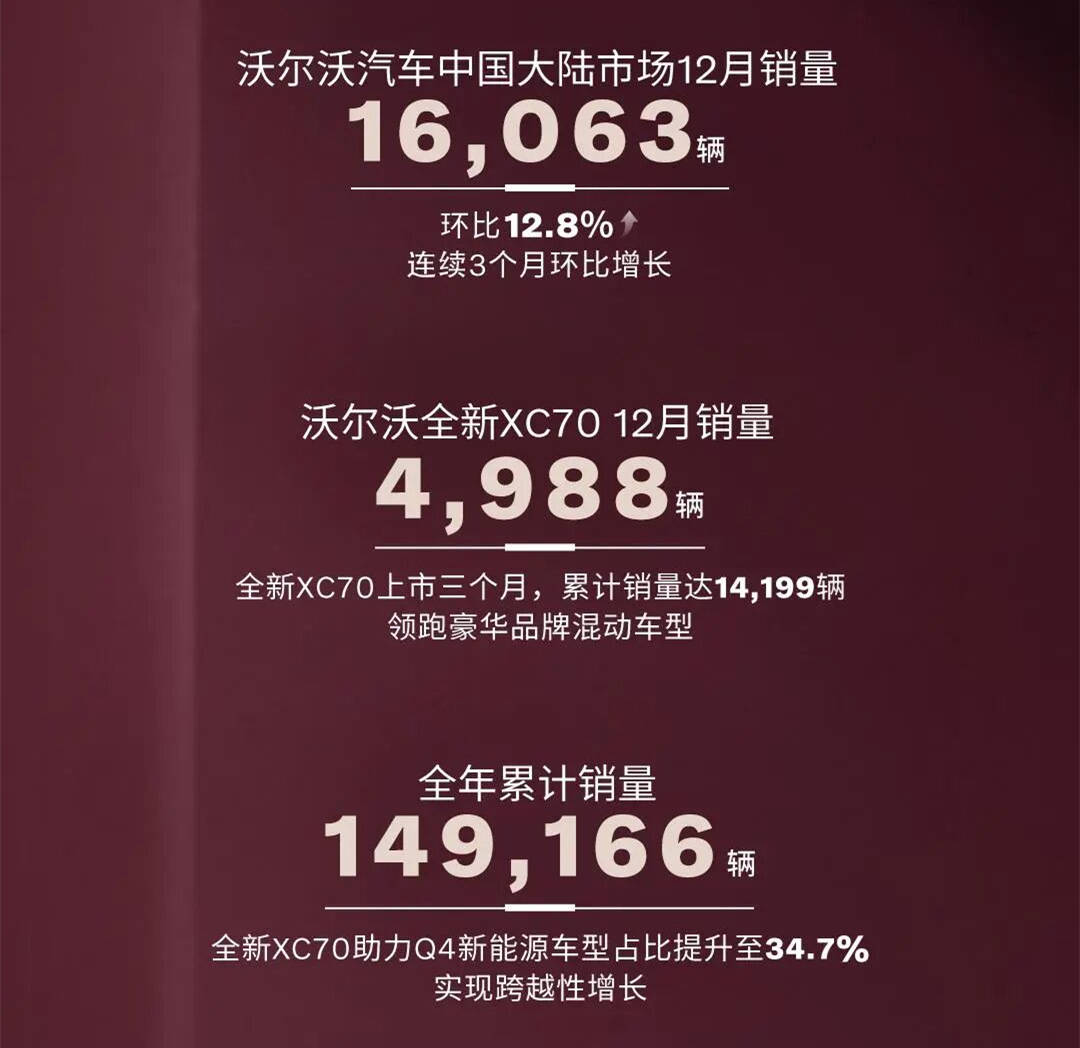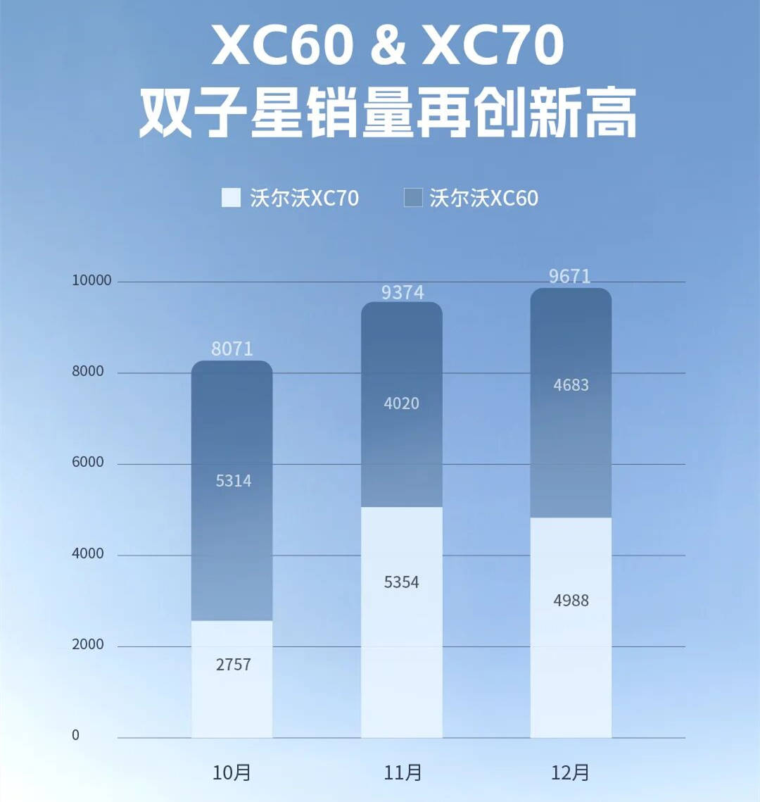XC70上市三個月累計銷量破1.3萬輛,12月賣出4988輛;XC60穩坐二線豪華中型SUV頭部位置,兩者形成混動+燃油的組合,不僅沒出現內耗,反而共同撐起了品牌銷量。