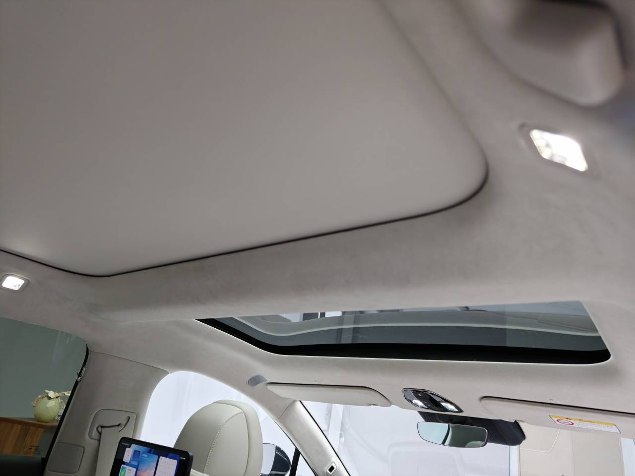 空間布置細節上,第二排采用純平地臺,同時后排出風口下部采用了內凹設計,即便是42碼鞋也可以輕松坐在中間。同時第二排也配有超大后排扶手,除了兩個杯架之外,還有無線充電面板和儲物盒,B柱上也設計了衣帽鉤,副駕駛座椅還提供了小桌板等。另外鉑智7沒有采用新勢力常用的全景天窗,而是使用兩段式天幕,前后都可以各自關閉遮陽簾。
