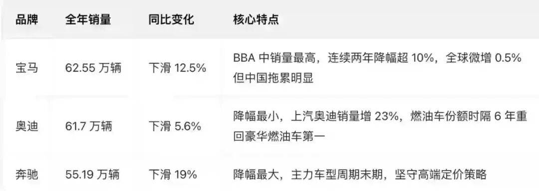 另外,在豪華品牌領(lǐng)域,德系三強(qiáng)的燃油車依舊含金量十足,2025年BBA(奔馳、寶馬、奧迪)在華的燃油車銷量占比仍超過70%。