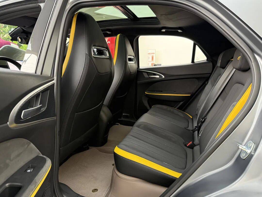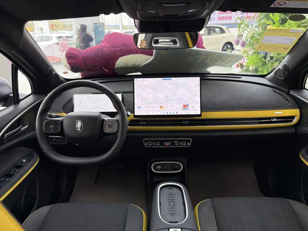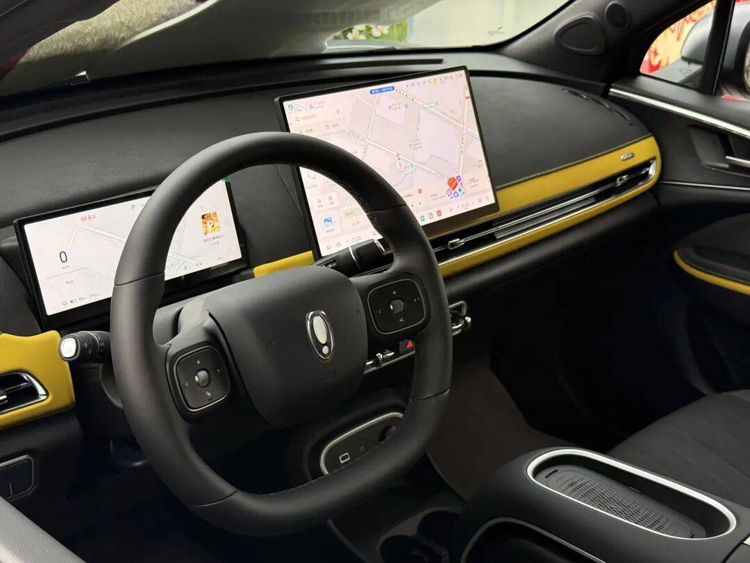 坐進車內,仿麂皮材質與黃色縫線的碰撞,瞬間點燃駕駛激情。內飾以“運動輕奢”為基調,全系標配360°仿碳纖維紋理飾板,搭配一體式桶形運動座椅,帶來出色的包裹感。中控臺布局簡潔有序,減少了繁雜的實體按鍵,10.25英寸液晶儀表與14.6英寸懸浮中控屏的組合,兼顧了科技感與實用性;兩輻式運動方向盤經過反復調校,握感飽滿舒適,讓每一次操控都充滿樂趣。