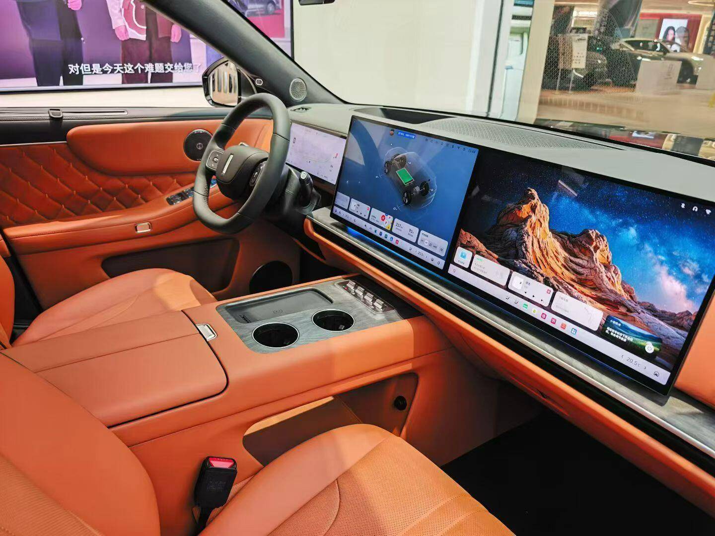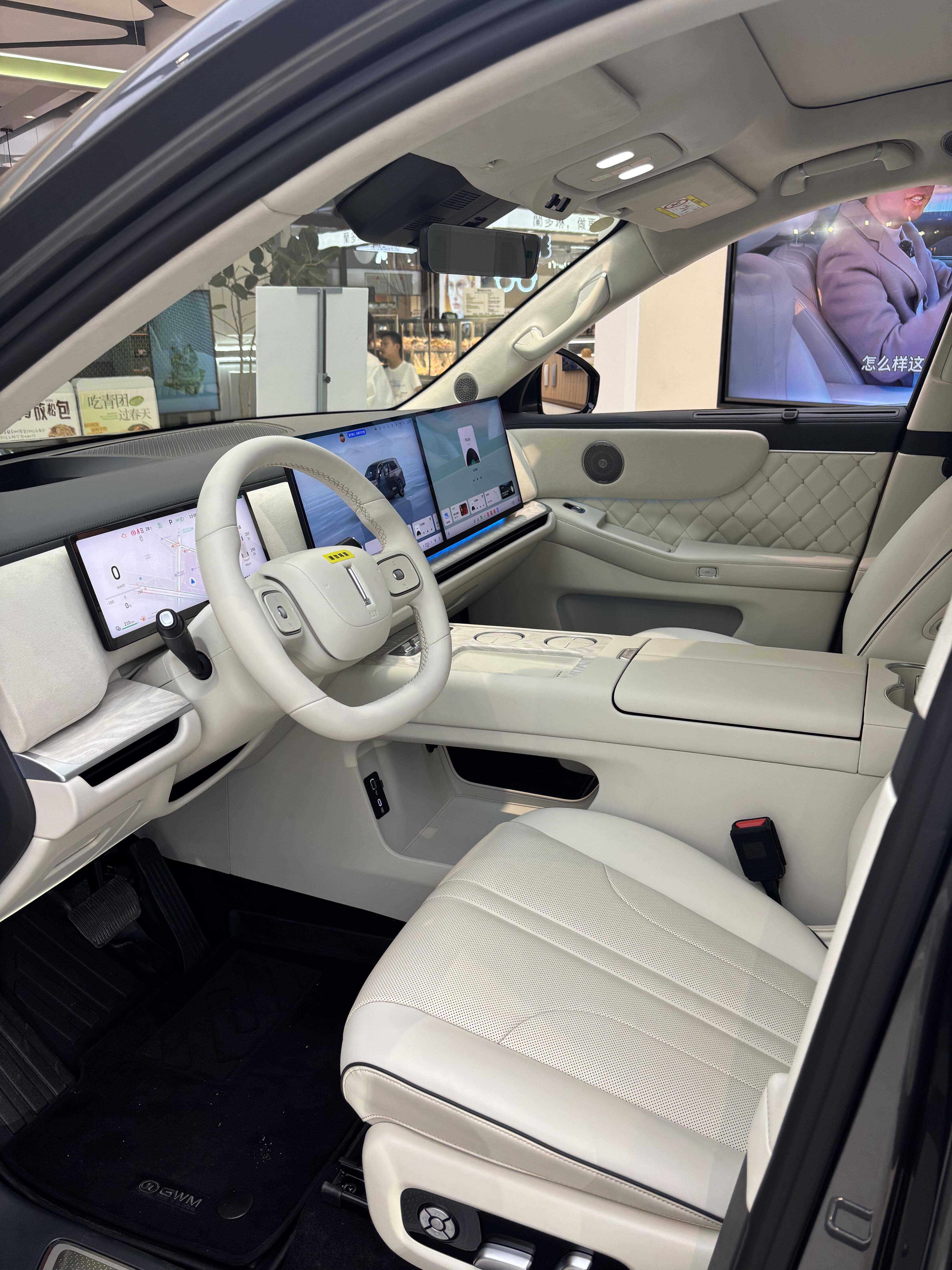 內飾也是當下主流的雙聯(lián)屏布局(雙17.3英寸3K),再配合12.3英寸全液晶儀表屏以及AR-HUD抬頭顯示,營造出科技氛圍,并搭載Coffee OS智慧座艙,以及“小魏同學”AI艙駕智能體。而大量皮質包覆,配合拱陣3D絎縫刺繡工藝、木紋飾板以及氛圍燈等,繼續(xù)強調豪華感。同時還將配備雙幅式多功能方向盤+電子懷擋,副儀表臺上有物理按鍵、50W手機無線快充、智能冷暖冰箱等。