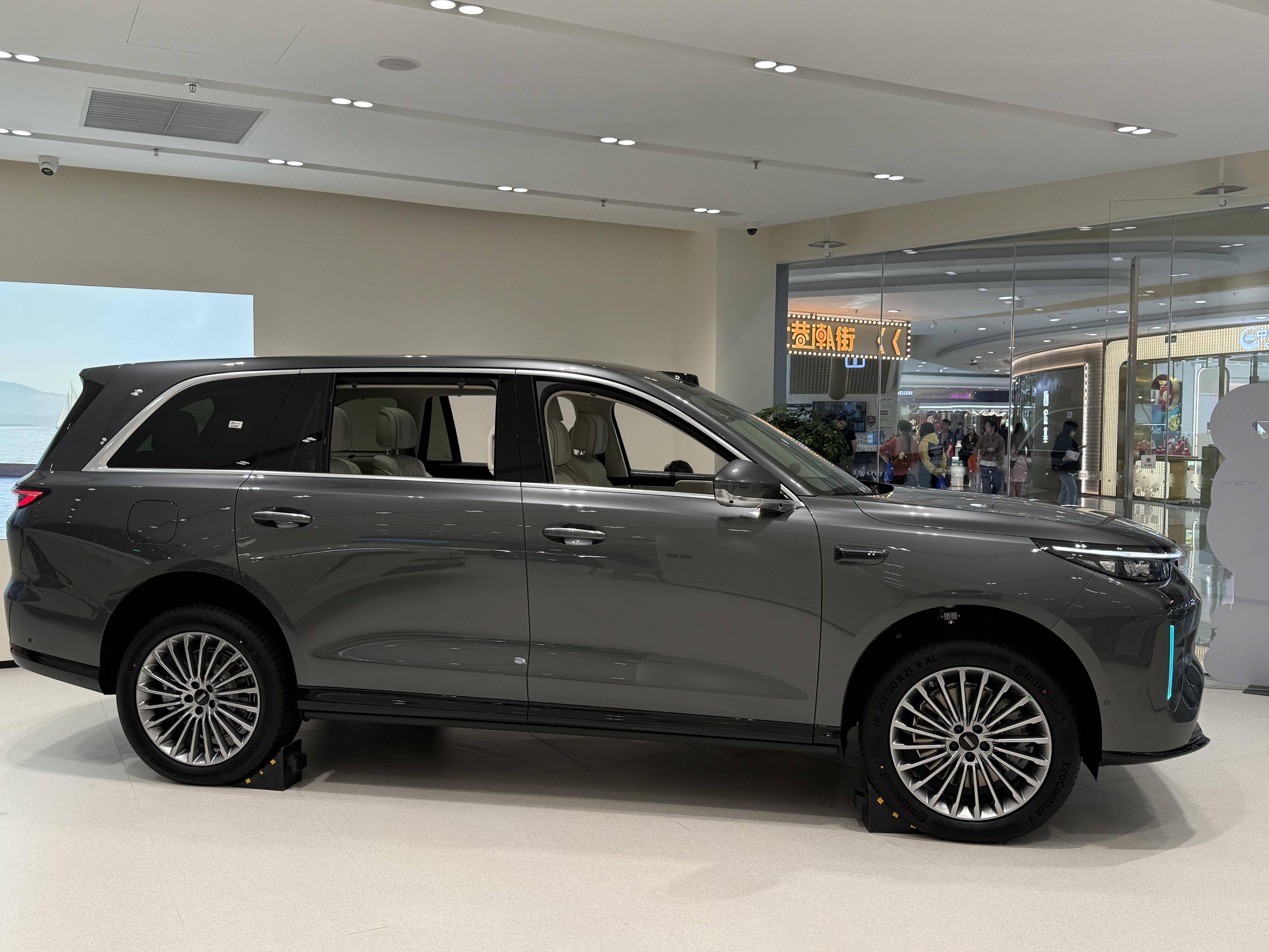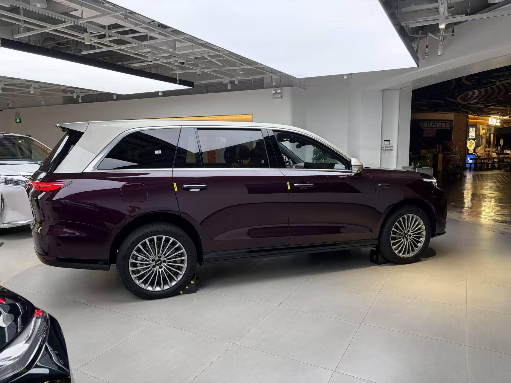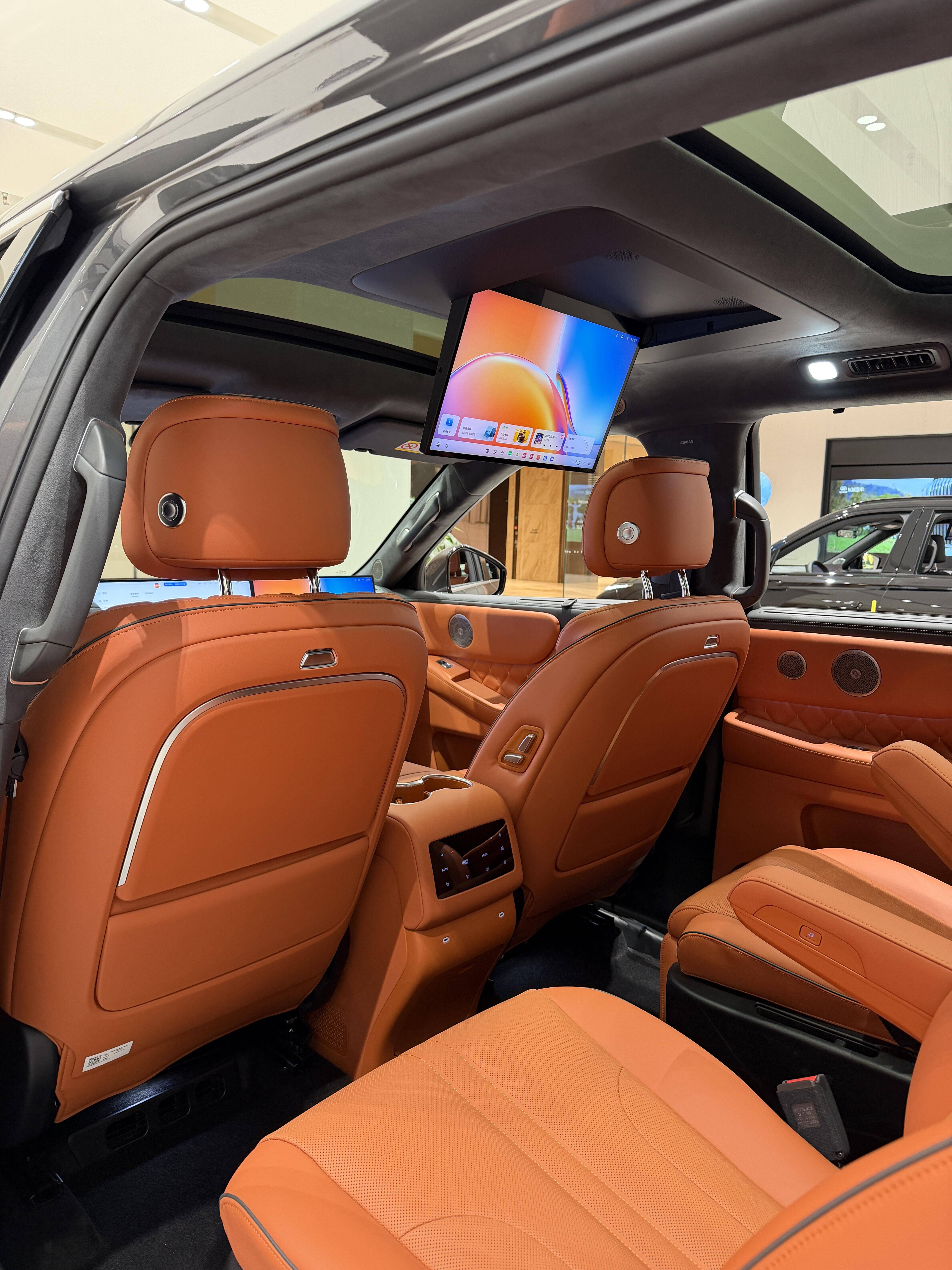 車身尺寸長寬高分別為5299/2025/1825mm,軸距3150mm,大過同級問界M9、極氪9X等。龐大的身軀配合方正立體的輪廓,給人感覺很有氣場,另外除文淵黑、影壁灰、月華銀、天華綠、丹宸紫外,還提供紫闕鎏金、黑玄曜金兩款雙拼色,再配合細節(jié)處鍍鉻飾條點綴、21英寸密幅式輪轂等,進一步提升了豪華氣息。而“矩陣疊影”尾燈、電吸門、電動踏板的加持,繼續(xù)強調高級感。