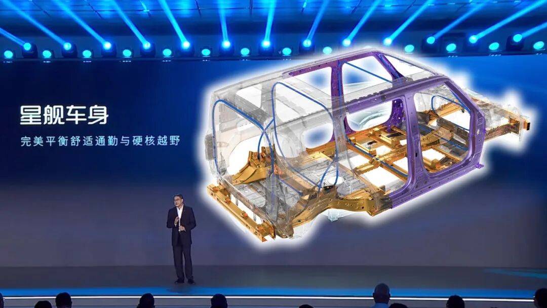 設計了一個“嵌入式大梁”,為了展示新成果,他們表示該車身的扭轉剛度達到38000牛米/度,是傳統硬派越野的4倍。