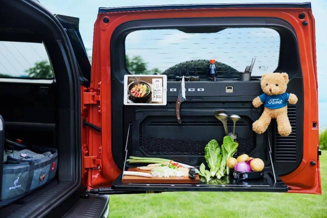 也正是因為擁有了大容量的動力電池,福特智趣烈馬在戶外露營時能夠實現用電自由,6KW對外放電能力可支持多設備同時用電,模塊化尾門設計融合小桌板與多功能置物區,真正實現“一車放電,三桌火鍋”的戶外餐飲體驗。結合原廠側邊帳,用戶可快速在自然中搭建起“一廚一廳”,大幅降低露營準備門檻。“車頂帳篷+車內臥室+移動廚房”的組合,福特成功地將SUV從交通工具升級為“戶外生活樞紐”。