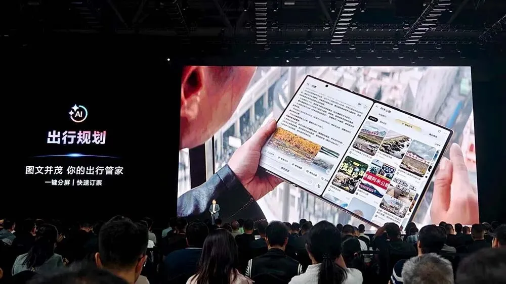 華為常務董事、終端BG董事長余承東率先登臺,他在現場激情地說道:“三折疊能超越華為的只有華為。”中國知名男歌手、演員劉德華也來到了現場,與余承東進行互動。