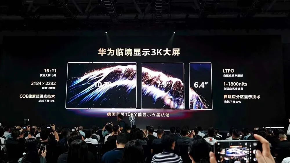 華為Mate XTs搭載了一塊3K的大內屏,其采用了新的COE像素透光技術,讓屏幕功耗下降了13%。