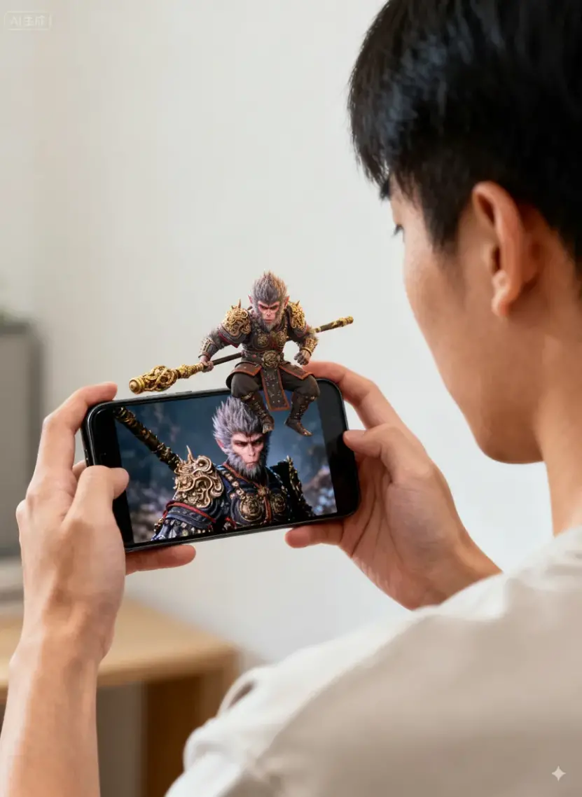 這波題考的是這兩個模型,能不能認出游戲圈頂流“悟空”?還得有想象力,讓他合理地“坐”在手機上。