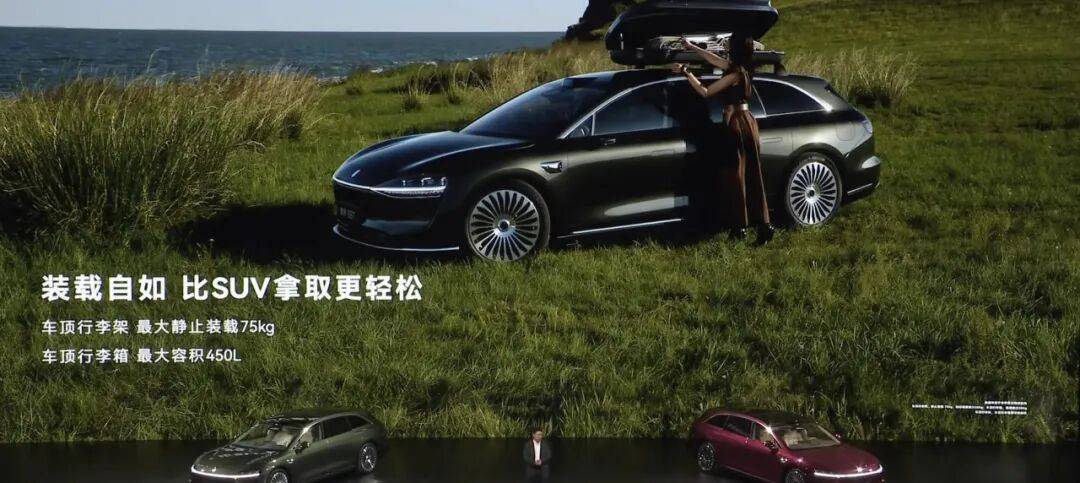 當然,作為一款旅行車,享界S9T自然也提供了車頂的行李架來給你放旅行箱。