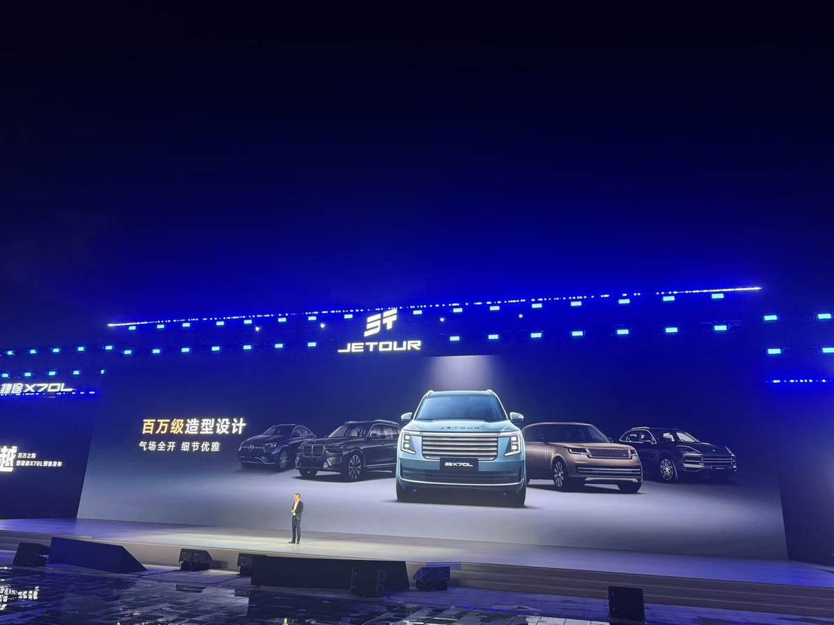 就在的預售現場,一張捷途X70L居中領銜奔馳、寶馬、路虎、卡宴的照片出現在大屏幕上時,“百萬級造型設計、氣場全開、造型優雅”的產品口號就被具象化了。
