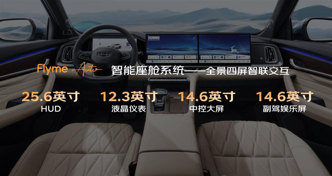 車內(nèi)用料很厚道,皮質(zhì)包裹搭配木紋飾板,多媒體中控屏與副駕駛娛樂(lè)屏組成的雙聯(lián)屏是整個(gè)內(nèi)飾的亮點(diǎn),兩塊屏幕均升級(jí)至 14.6 英寸,觀感比老款車型好很多。車機(jī)加入Flyme Auto系統(tǒng)。基于7nm高通8155芯片的算力加持,而且還提供25.6英寸全彩HUD抬頭顯示。支持全面屏手勢(shì)、一語(yǔ)即達(dá)等功能,全面兼容Flyme Link、HiCar、CarLink、CarPlay。全系標(biāo)配深度融合Deepseek大模型的AI語(yǔ)音系統(tǒng)。