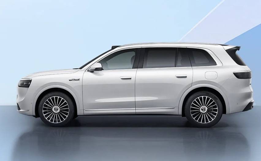 理想i8定位中大型SUV,其具體長寬高分別為5085×1960×1740mm,軸距3050mm,車身數據相比前者有所落后。該車車身設計有著濃郁的跨界風格,車頂線條在經過B柱之后緩緩下滑,B/C/D柱均進行熏黑處理,營造出懸浮車頂的視覺效果。其車尾風格則與L系列看齊,尾部車頂明顯下壓,貫穿式尾燈組造型簡潔,看起來相當干練。