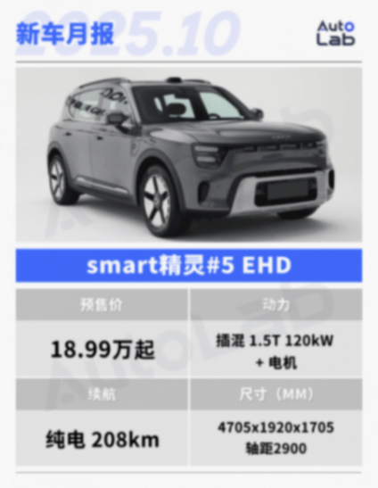 精靈#5 EHD是smart旗下首款插混車型,新車搭載了EHD超級電混技術,由1.5T發動機和驅動電機組成。