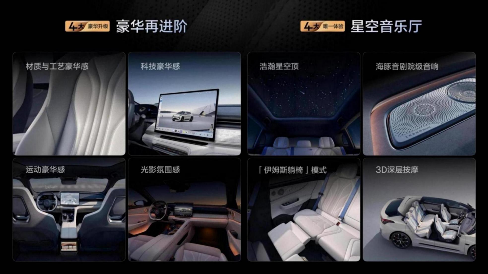 下一個版本的Ultra+就再貴3萬元,達到31.98萬元,增加電動門、感應式電尾門、星空天幕、光感天幕這些,還有贈送的22英寸輪轂、Brembo六活塞卡鉗、碳纖維后視鏡等。