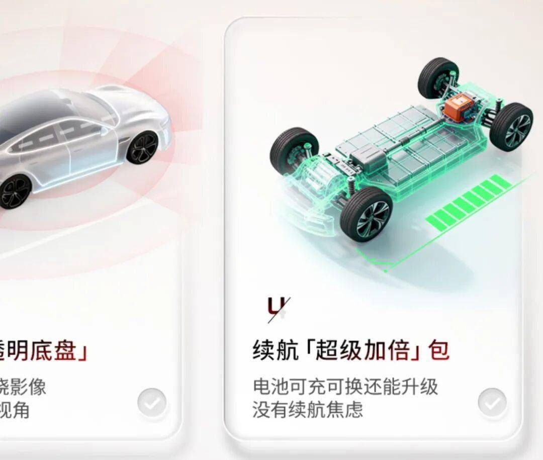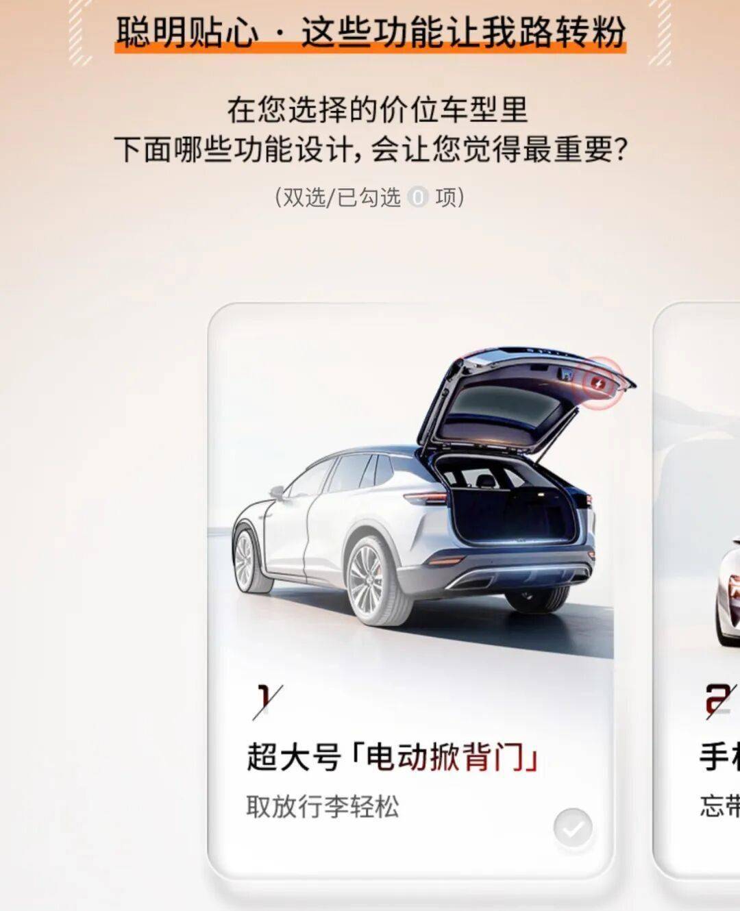 緊接著的,還有配置的選型。 電門掀背門、手機智能鑰匙、540°環繞影像以及可換電的電池包。也不妨就筆者的個人觀點再分析一波,這一選項其實就是在 提前暗示未來京東第一輛汽車會有的配置了。電商的模式,大家都懂的。