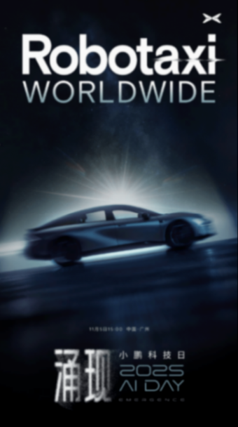 小鵬汽車官宣首款Robotaxi今日將亮相小鵬科技日,預計與高德合作,目標拓展全球市場