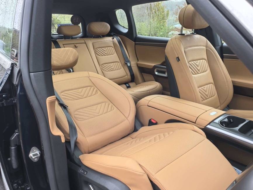 后排純平地板,讓中間座位不再是“懲罰座”;12度可調節靠背和堪比行政級轎車的后排腿部空間,實測能夠輕松翹起二郎腿,讓長途旅行秒變移動沙發。