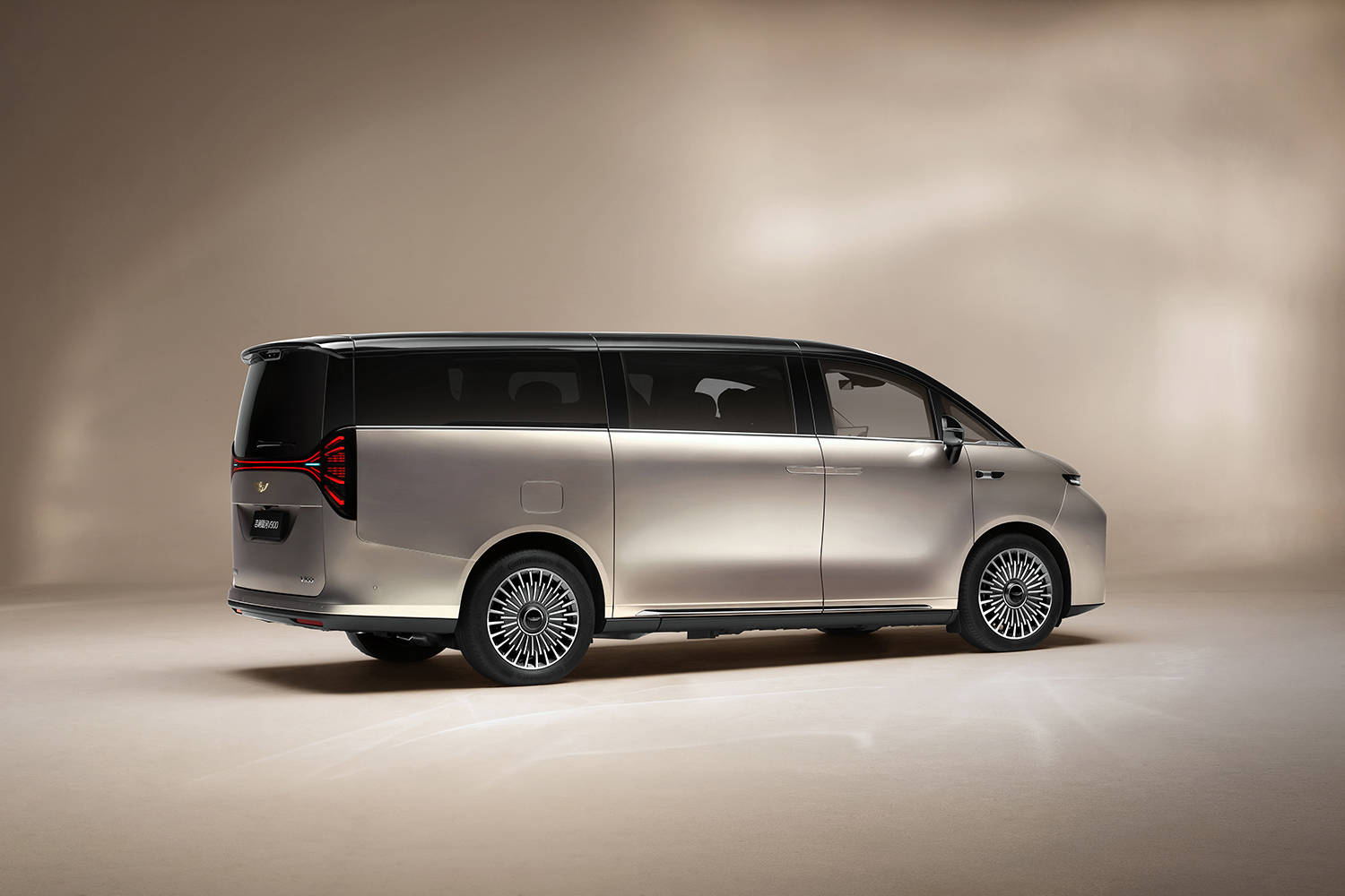 側面造型基本沒有變化,車身尺寸部分,長寬高分別為5360/1998/1940mm,軸距為3200mm。新車依舊采用雙色車身設計,尾部依然維持現款車型的貫穿式尾燈樣式。與此同時,銀河V900首創“3個1”全球最大空間布局——二排空間超1013mm、三排空間超1013mm、后備箱超1100L,極大程度地提升了空間延展性。200mm的二排中央通道和168mm的三排中央通道皆為同級最寬,總長達2720mm的貫穿通道,讓全家人能暢享空間自由。后備箱可輕松容納15個20寸行李箱,滿載7人時容積仍達同級2倍,滿足大家庭出行儲物需求。