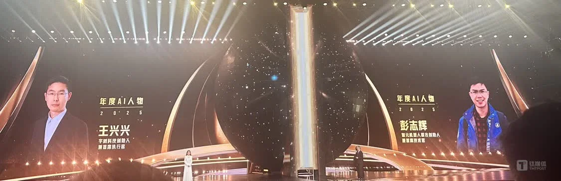 7月26日晚舉行的一場AI盛典上,宇樹科技創(chuàng)始人、CEO王興興,與智元機器人聯(lián)合創(chuàng)始人兼首席技術(shù)官彭志輝(稚暉君)一起獲得了“2025年度AI人物”稱號,其他8位年度AI人物還包括智譜CEO張鵬、強腦科技創(chuàng)始人韓璧丞等。