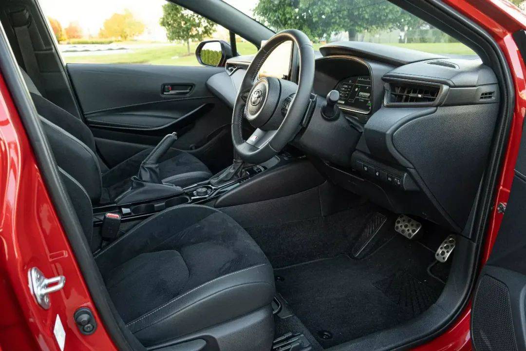Yaris的車內幾乎每一寸都是硬邦邦的黑色塑料,而GR卡羅拉在儀表盤和門板上則采用軟質皮革。不過,豐田在GR Yaris的中期改款中對內飾進行了改造,但卻沒有對卡羅拉做同樣的改動,所以它的內飾基本上和老款車一樣。