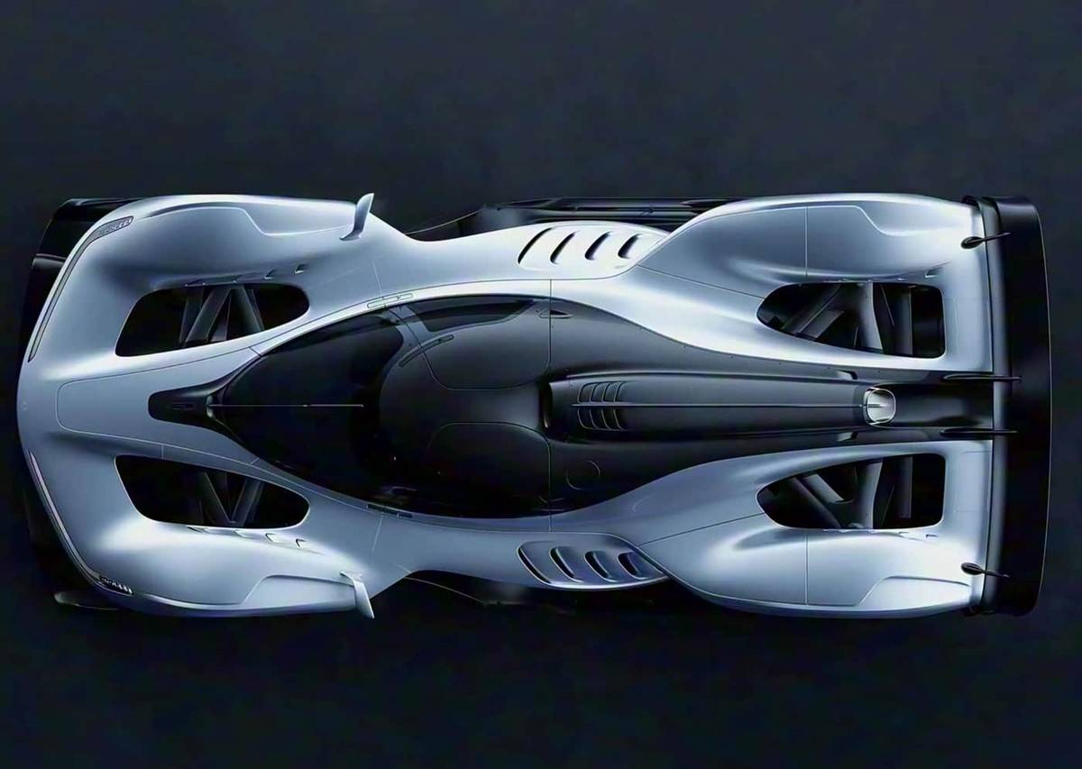 從官圖來看,新車在前臉部分換裝了更狹長的燈組,并配備了符合法規要求的外后視鏡和雨刷器。排氣尾喉被設置在發動機蓋的中央脊線上。車身尺寸相比概念車更為緊湊,長度約為5米,寬度約2米,更接近F1賽車的比例(長約4.7米,寬約2米),以提升操控穩定性。