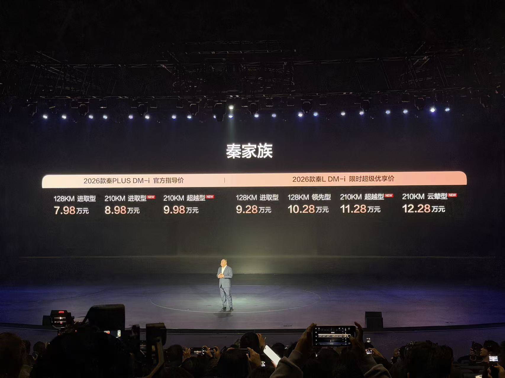 1月8日,比亞迪秦家族迎來雙車煥新,2026款秦L DM-i和秦PLUS DM-i長續航版正式上市。其中,2026款秦L DM-i 售價為9.28萬—12.28萬元,2026款秦PLUS DM-i 售價為7.98萬—9.98萬元,為不同用戶提供精準選擇。