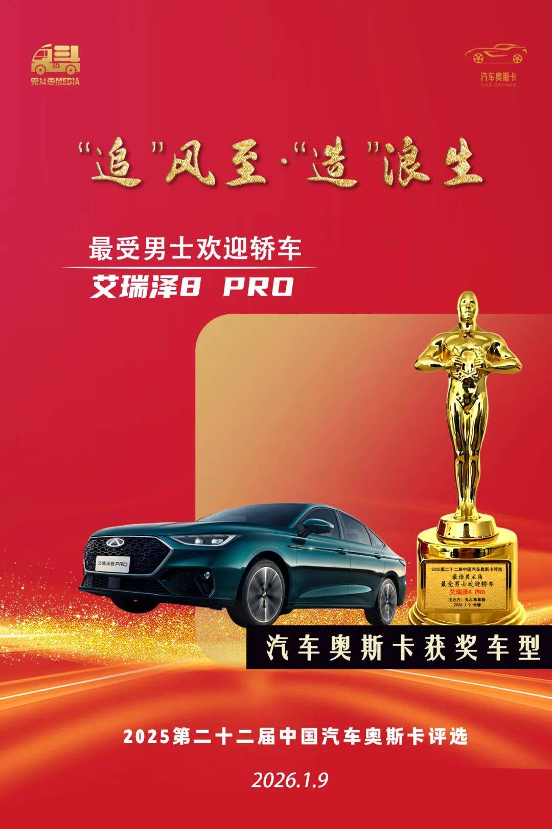 獲獎理由:2.0T鯤鵬動力隨叫隨到,精準操控指哪打哪,安全與舒適成就豪華之選。艾瑞澤 8 PRO貫徹熱愛,榮耀加冕,以實力燃動每一腔熱血。