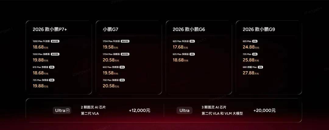 1月8日,2026小鵬全球新品發布會上,小鵬汽車正式發布2026款小鵬 P7+、小鵬 G7 超級增程、2026款小鵬 G6、2026 款小鵬 G9。表面看,這是一次產品線再一次切入到超級增程上,但如果只把注意力放在動力形式上,很容易忽略這場發布會真正的不同之處。