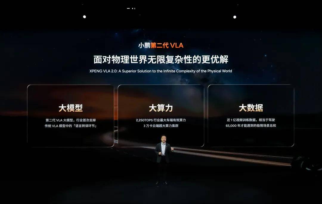 小鵬在20萬級主流產品上,開始系統性地討論算力、芯片和大模型。2250TOPS 的車端算力、四款車型全面切換自研圖靈 AI 芯片、第二代 VLA 被明確放到量產體系中,這些原本更容易出現在高價車型、概念車或技術日上的智能配置,被直接拉進了一個高度市場化的汽車價格帶。
