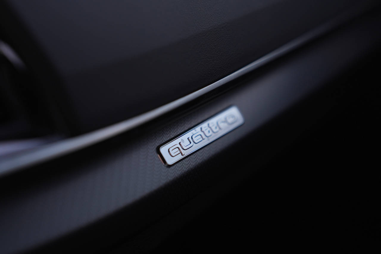 奧迪人的圖騰“quattro”四驅系統(tǒng)在常態(tài)下悄無聲息,卻可以在濕滑路面或者快速過彎時,提供一種無形而堅實的抓地力,讓駕駛者如駕駛軌道車一般信心倍增。車廂內(nèi)的靜謐性同樣出色,只有發(fā)動機傳來微微的噪音在提醒你,這是一臺燃油車,它的心臟此時此刻正在跳動!你當然可以一腳油門下去,讓它心跳加速,血脈噴張一下。