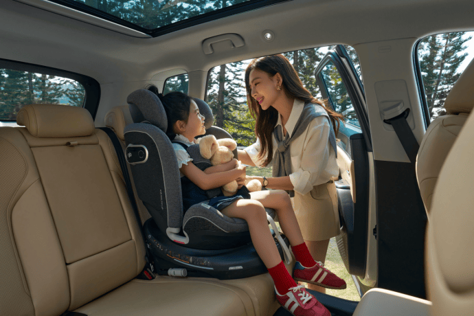 在智能化和舒適性層面,2026款宋Pro DM-i 220km版的升級思路同樣圍繞家庭出行展開。新車通過生態(tài)互聯(lián)的方式,將兒童安全、乘坐舒適與放松體驗(yàn)納入整車智能體系。與好孩子聯(lián)合開發(fā)的智能兒童安全座椅,支持車機(jī)互聯(lián)與語音控制,降低了帶娃出行的操作負(fù)擔(dān);倍輕松智能頸部按摩儀和智能眼罩的加入,則更多照顧到長時間乘坐時的放松需求。這些配置并非單純“堆料”,而是更偏向真實(shí)使用場景下的體驗(yàn)補(bǔ)充。