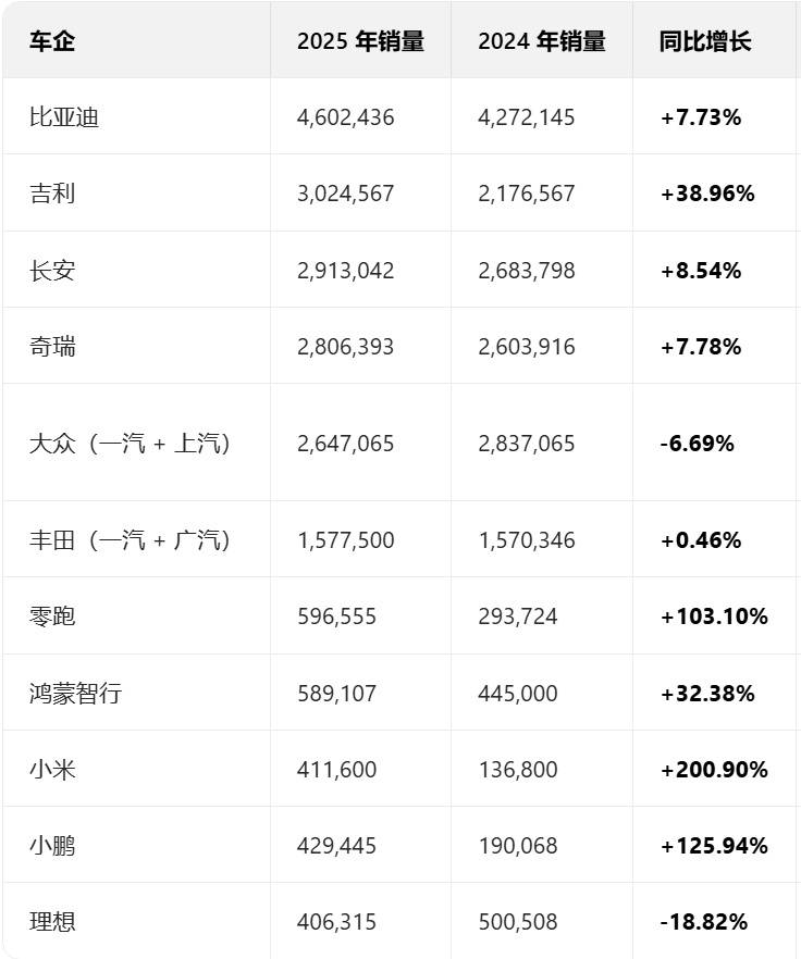 2026年已經過去半個月,去年各家車企年銷量數據也塵埃落定。