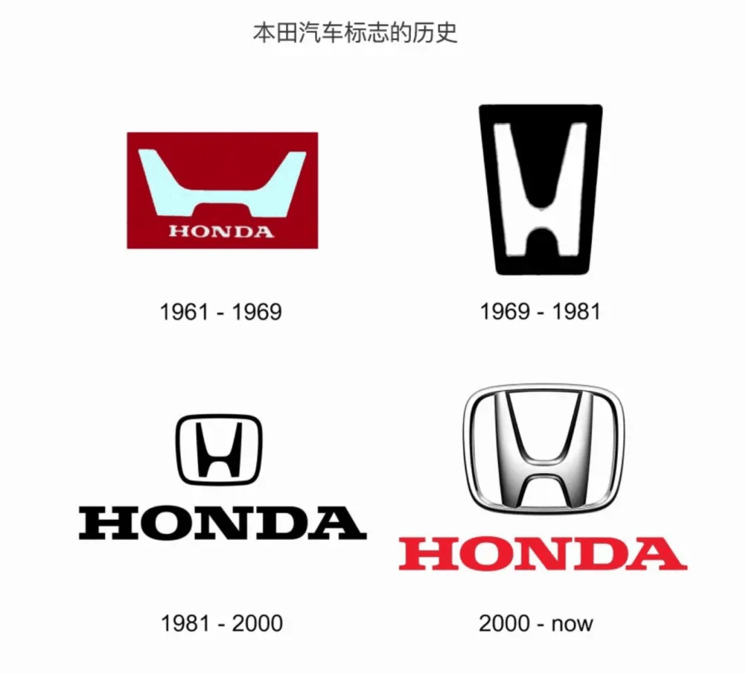 有趣的是,本田新H標很容易讓人想起上世紀六十年代本田使用過的另一版H標志,就像雷諾和標致一樣,其實本田也是以致敬過去的方式將舊標志進行了改造,在賦予其復古氣息的同時保持新鮮和現代的視覺外觀。資料顯示,本田成立于1948年9月,第一代車標其實就是巨大的H,并沒有如今的圓角邊框,與本田最新發布的標志極為相似。1969年,本田對H標進行重新設計,H字母變得更高更窄,并在字母的底部加上了一個倒梯形的黑色背景。1981年,本田對車標進行第三次改造,優化了H的字形結構,原本黑色的背景反白后變成了圓角的黑色邊框。2000年,本田重新繪制標志。字母H的線條被拉長,將顏色從單色改為漸變金屬灰色,襯線字標改為紅色,使其與圖標組合時在看起來更加協調和平衡。