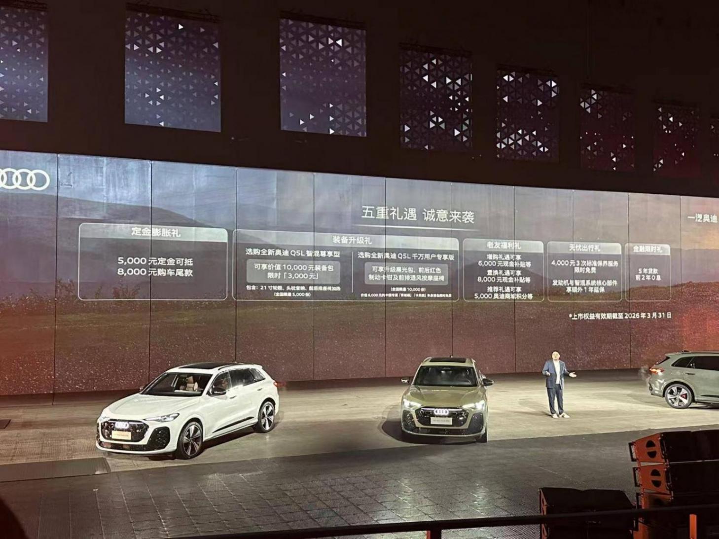 發布會現場還公布了購車權益,在2026年3月31日之前購車可以享受5000訂金抵8000元尾款以及5年貸款前兩年0息等權益。對于老車主退出了6000元現金補貼增購禮,8000元現金補貼置換禮等。