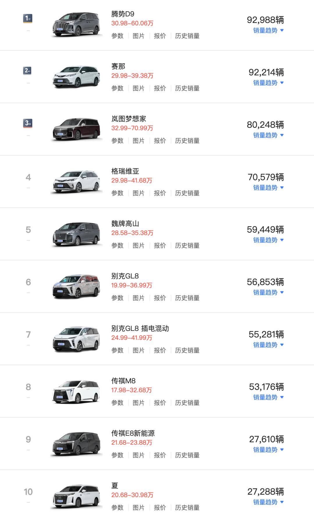從榜單來看,Top10中新能源占6席,插混車型憑借“可油可電”優勢成為主流,純電車型在高端市場逐步發力,充電設施完善與技術成熟加速替代傳統燃油MPV。騰勢、嵐圖、魏牌等自主高端品牌在25萬+市場站穩腳跟,以技術、配置、價格三重優勢擠壓合資份額。豐田賽那/格瑞維亞憑借混動技術的可靠性與低用車成本,同比增長顯著,別克GL8燃油版、傳祺M8等燃油車型同比下滑明顯,電動化轉型迫在眉睫。