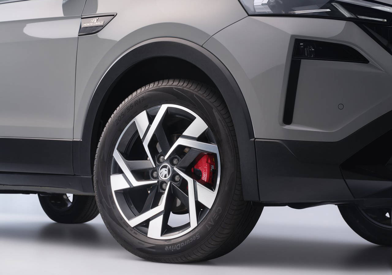車尾也換用了斯柯達主推的貫穿式燈組,發光品牌字母成為點睛之筆。除了新增綠、灰、紅三款車漆,Kushaq其它部分變化不多,保留了傳統SUV造型和鍍鉻飾條,4221、1760、1612mm的長寬高,則和大眾途鎧差不多,只是因為照顧印度道路情況,離地間隙做到188mm,顯得更魁梧一些,輪輞有16和17英寸兩種規格。
