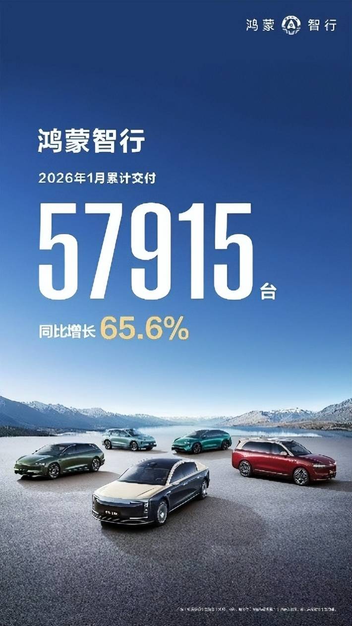 鴻蒙智行:1月交付57,915輛,同比增長65.6%