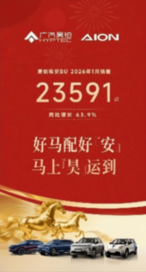 昊鉑埃安BU:1月銷量23,591輛,同比增長171.63%