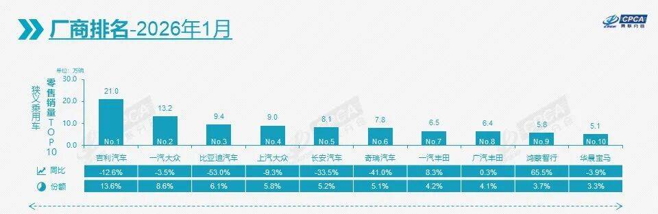 1月絕對是特殊的,于是,在車企銷量TOP10榜單中,也出現(xiàn)了一些“反常”的現(xiàn)象。