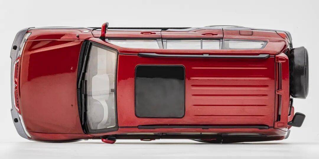 后蓋為側開合頁設計,開啟角度非常大,后蓋內側的細節也有所刻畫,行李艙有植絨.模型的第三排座椅為可拆卸結構,取走第三排座椅后,行李艙的地板可以掀開,里面有滅火筒和工具細節。模型的第三排座椅為磁鐵吸附的獨立分件,而且同樣可以折疊起來。
