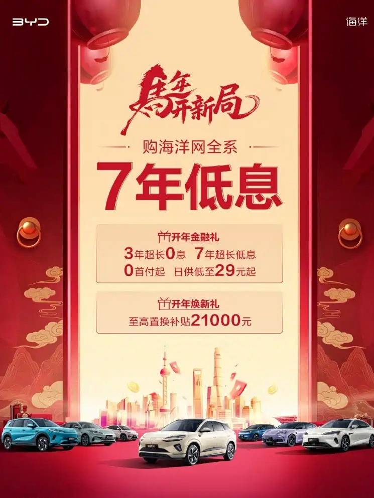 邏輯很簡單,一輛20萬的車,走常規貸款月供壓力不小。但拉長到7年(84期),再配上超低息,月供直接砍半,比亞迪甚至打出了日供29元起的宣傳海報。對于手里積蓄不多但收入穩定的年輕人,這誘惑確實不小。