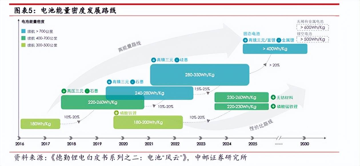 可見,固態電池的量產是不能一蹴而就的,而是要通過“液態電池-混合固液電池(成本較高)-混合固液電池與液態電池同價-固態電池(成本較高)-固液同價”的趨勢發展。